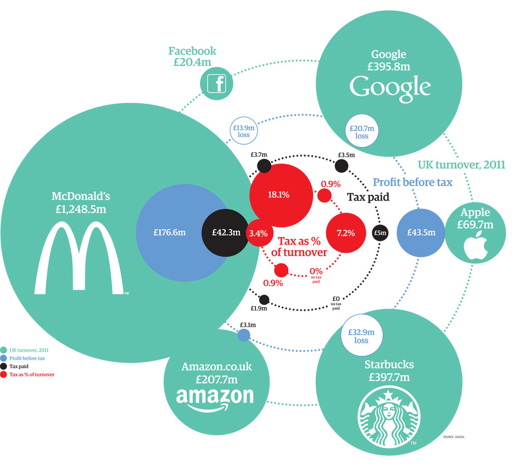 A The Guardian újságírói rámozdultak a témára és utánanéztek, hogy konkrétan mennyi adót fizetett 2011-ben néhány Nagy Britanniában tevékenykedő amerikai multi.
