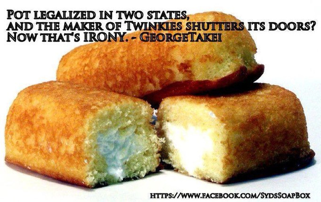 A Twinkies-mémvariációk egyik rendszeres főszereplője Tallahassee, a Zombieland Woody Harrelson által alakított hőse, aki az egész filmben egy Twinkies-szállítmányt keres a zombik dúlta Amerikában. A másik visszatérő poén, hogy a fűfogyasztók körében különösen népszerű édesség éppen akkor szűnik meg, amikor két amerikai államban is megszavazták a marihuánafogyasztás legalizálását.