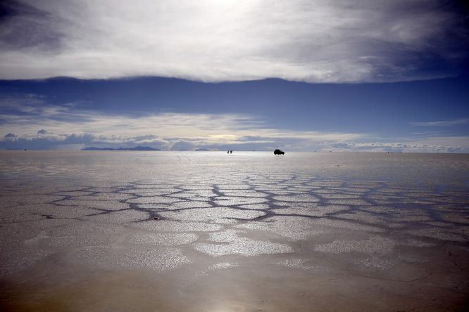 Bolíviai területen, a chilei és az argentin határ közelében olyan hatalmas sómező van, amely a Google műholdas világtérképén már akkor jól kivehető fehér foltként látszik, amikor még a teljes kontinens is belefér a nagyításba. Ez a Salar De Uyuni, amely a világ legnagyobb, durván 100 kilométer átmérőjű sós mocsara. Felszíne alatt olykor csupán mintegy 40 méteres mélységben található az a vizes sóoldat, amelyet fehér folyadék formájában bányásznak ki, majd a vizet a napra kitéve focipálya méretű szárítókban párologtatják el. A tömbökké összeálló maradék különböző fémsókat tartalmaz, döntően lítium-kloridot és magnézium-kloridot, amelyeket szétválasztanak, illetve a kereskedelmi forgalomba hozatalra alkalmas vegyületekké alakítanak.
