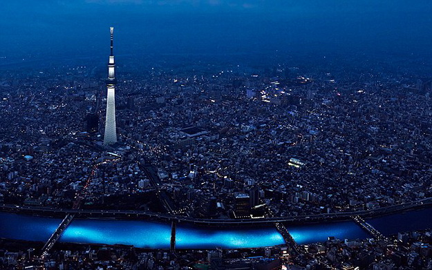 A Symphony of Light című eseményen bemutatott, az ember és a természet közötti szoros kapcsolatot szimbolizáló performansz a világ második legmagasabb épületének számító, ugyancsak kékes fényben megvilágított Tokyo Sky Tree előtti folyószakaszon történt.