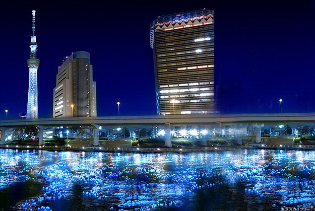 Nem is olyan régen, pontosabban május 6-án egy rövid időre rejtélyes kék fényben kezdett el derengeni a Japán Sumida folyó. A háttérben a Panasonic áll, ami semmi pénzért nem hagyta volna ki, hogy megmutassa, mire képes. Jól tették! Az akciójuk, amelyben körülbelül 100 000 LED-golyót eresztettek le a folyón, a két napos Hotaru (szentjánosbogár) Fesztivál részét képezte.