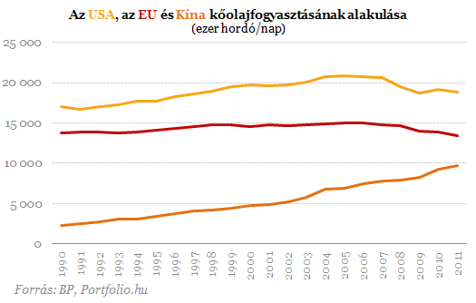 2011-ben rekord magas áron kereskedtek a kőolajjal, miközben a globális olajfogyasztás is új csúcson tetőzött. Az USA és az EU olajéhsége éves szinten csökkent, miközben a kínai fogyasztásnövekedés továbbra is töretlen.