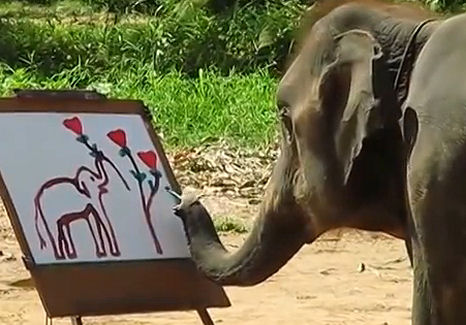 Az állat különben nem egy kapkodós és izgága fajta, megfontoltsága és végtelen nyugalma pedig olyan teljesítményt hoz ki belőle, amitől neked is elakad majd a szavad, ha megnézed az alábbi videót. Akár hiszed, akár nem, a szöveg fölötti képet tényleg a kiselefánt festette, gondozójától mindössze annyi segítséget kapott, hogy az ecsetet ő mártotta a festékbe.